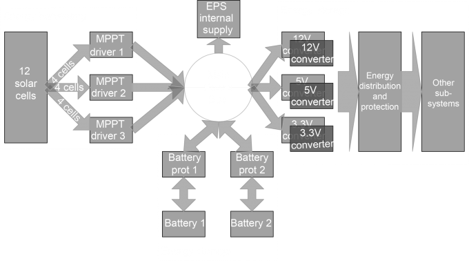 On orbit the satellite will be powered by solar panels that are placed on the side panels of the satellite. For the success of the mission energy collection must be as efficient and as reliable as possible