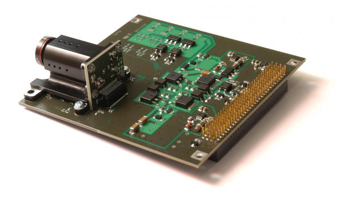 Elektroonikaplaat, mis tegeleb kõrgepinge tootmisega traadi laadimiseks. (Nurgas on näha ka CAM, mis asub füüsiliselt samal plaadil.)